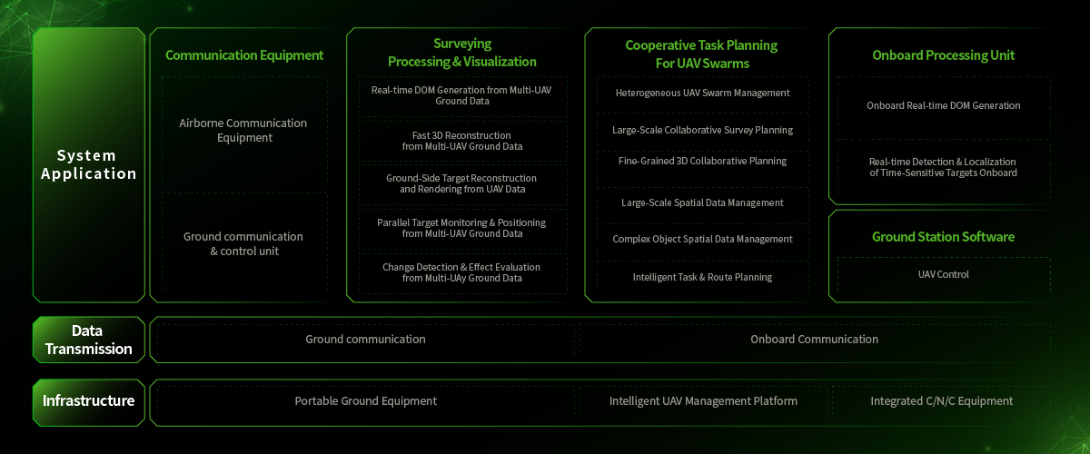 Addressing core challenges in forest firefighting—wide coverage, complex terrain, tight response and difficult rescue—we provide an all-in-one solution centered on the DroneSwarm real-time analysis system. It integrates hardware, AI algorithms and command dispatch to build a space-air-ground emergency response system, covering the full chain from data collection to decision execution and solving issues of low efficiency, limited coverage and poor precision.