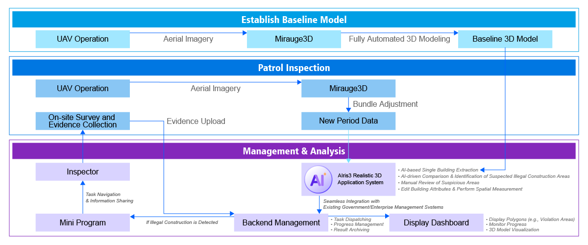 With 3D modeling and AI intelligent monitoring as the core, it connects the entire process of “inspection, measurement, and management” to leave no illegal construction undetected.