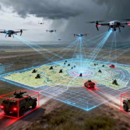 Heterogeneous UAV swarm synergy: real-time 3D battlefield mapping, precise time-sensitive target tracking, tactical data support with no comms dependency.